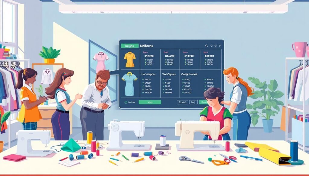 Then, I pick our team colors and durable fabrics. Our uniforms need to handle tough activities and lots of washes. I look for materials that stretch and keep moisture away. These features are key in modern athletic apparel.